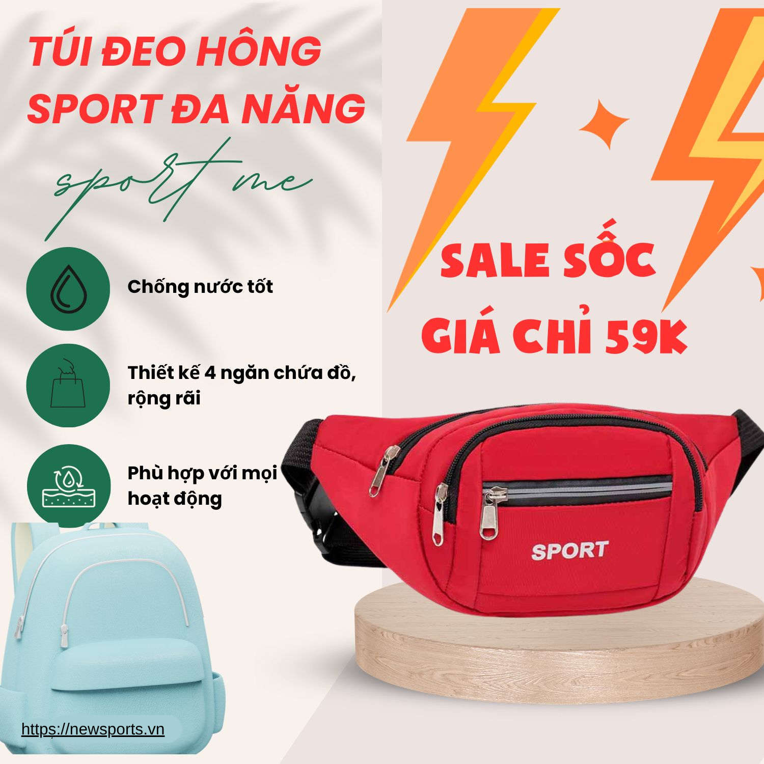 Kết cấu nhiều ngăn: 3 ngăn phía trước, 1 ngăn phí giáp bụng giúp bạn có thể dễ dàng sắp xếp nhiều loại vật dụng: ví tiền, chìa khóa, điện thoại… Rất tiện khi dã ngoại, du lịch, công tác,..